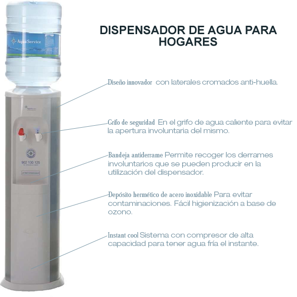 Pon un dispensador de agua en tu casa y obtendrás muchas ventajas como no tener que ir cargada/o con botellas de agua en la compra de la semana, podrás obtener agua fría, caliente y natural a la temperatura que desees, ya que tiene un regulador de temperatura que te permite acoplarla a tu gusto. Gracias a esto puedes suministrarte de agua caliente a punto de hervir para preparar tus comidas, incluso la de tus bebés.
